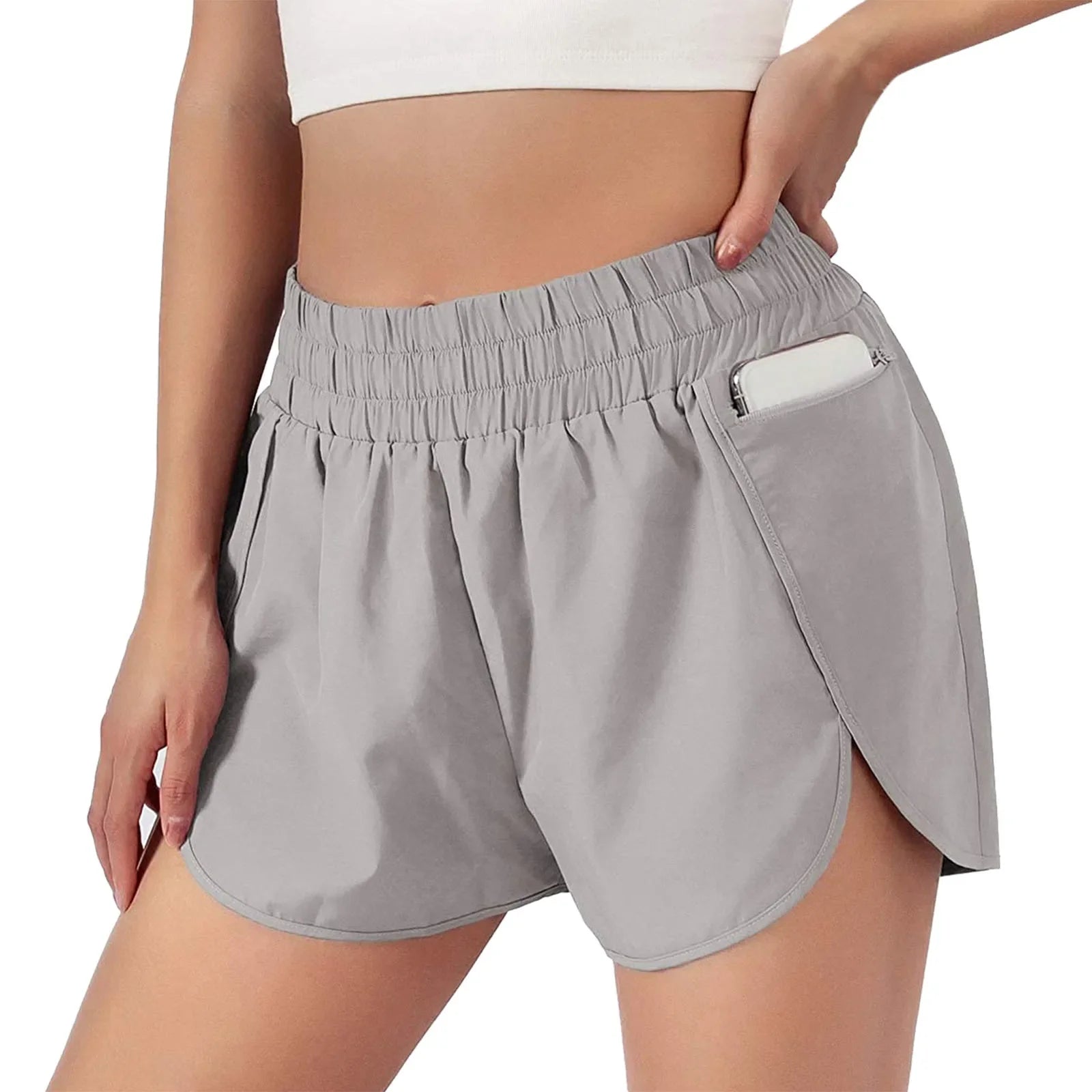 (S-2XL)Women Running Shorts Sports with Zipper Pocket Two Layers Loose Tennis Badminton Gym Fitness Short Pants Yoga Bottoms